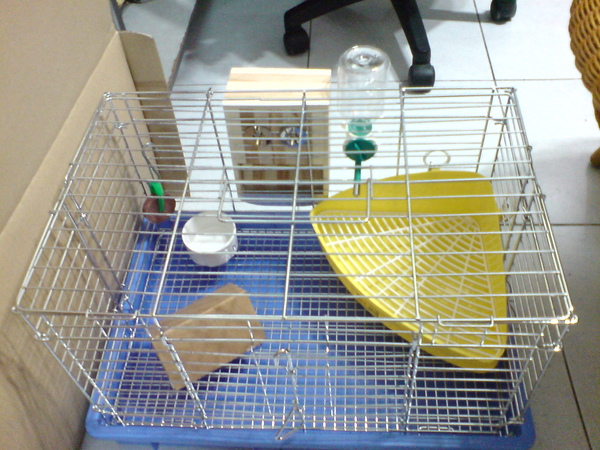 先用自製的圍欄把他圍起來,再把籠門打開,他就會自個兒很開心的跑出去兜圍子了。